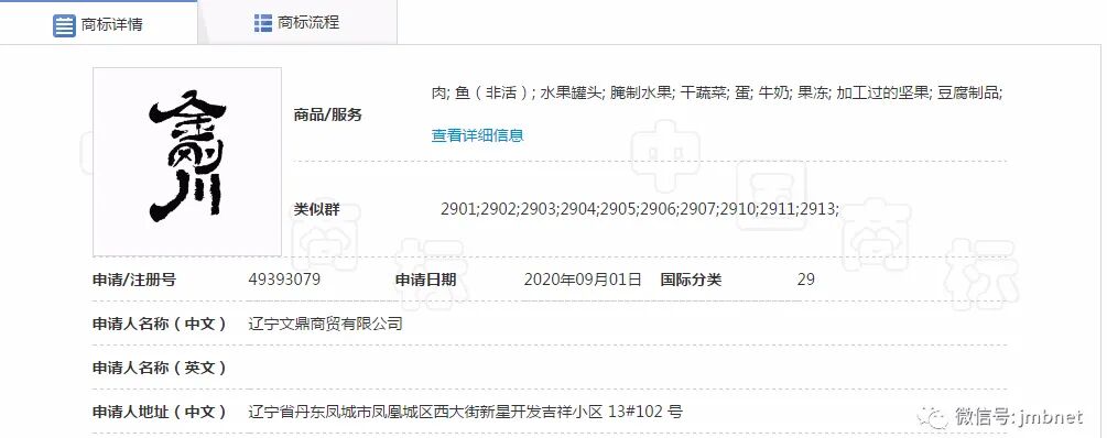 其中,在第29类食品上,可以发现中国电影股份有限公司和辽宁文鼎商贸有限公司在该类商标的商品服务有很多重合。