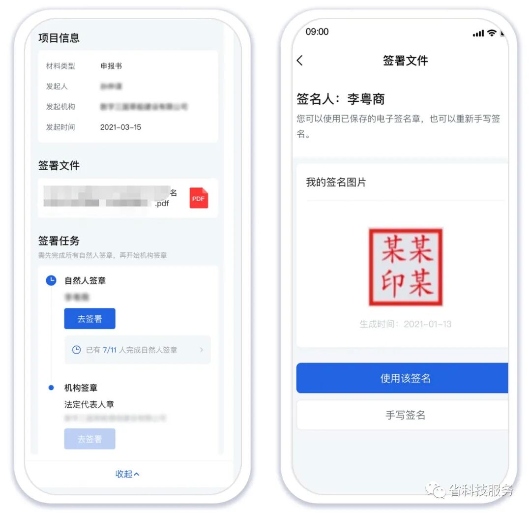 使用“科技项目电子签章”功能以后,指尖轻点即可完成签名盖章的所有步骤,方便又快捷。