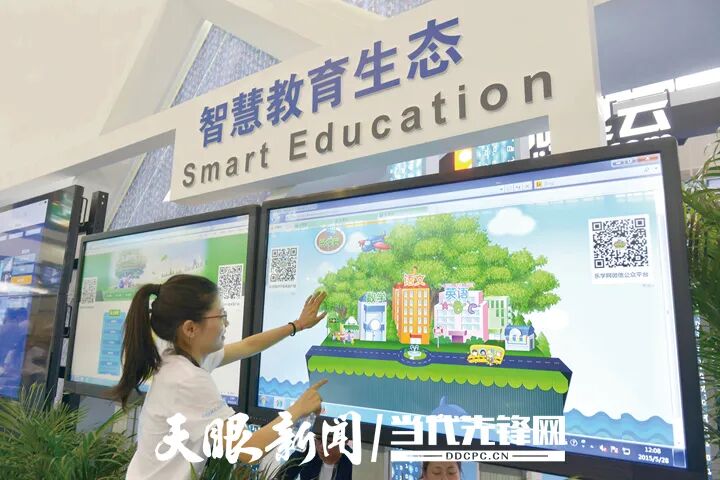 智慧教育以互联网、大数据、云计算为基础建立的智能分析和决策信息发布系统,使用大数据统计与分析技术,为本省教育管理与决策,为重大改革项目提供全面准确的统计数据和模型预测,便于决策层及时发现新问题、新特点、新规律。图为智慧教育生态平台演示。(来源《多彩贵州美美与共》画册)