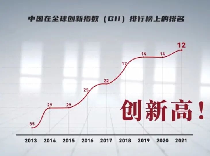 中国自2013年起,全球创新指数排名连续9年稳步上升,上升势头强劲。