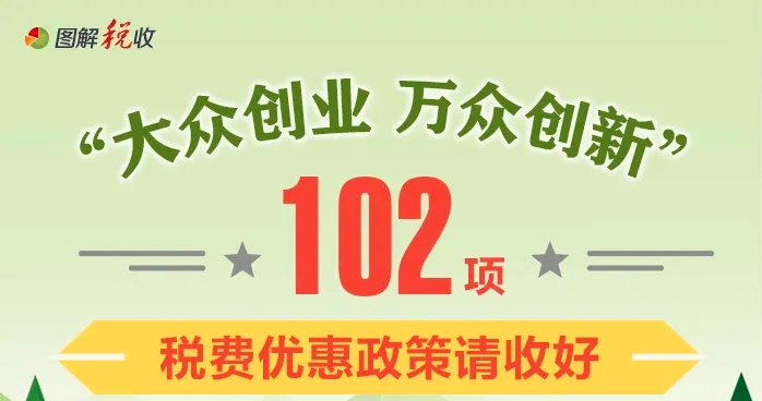 为推动大众创业、万众创新向更大范围、更高层次和更深程度推进,近年来,财税部门按照党中央、国务院决策部署,先后出台一系列税费优惠政策,截至目前,针对创新创业的税费优惠政策已达102项,涉及范围广、种类多、数量大、跨度大。今年7月,税务总局再次对《“大众创业 万众创新”税费优惠政策指引》进行了更新,便于纳税人缴费人及时了解掌握政策。