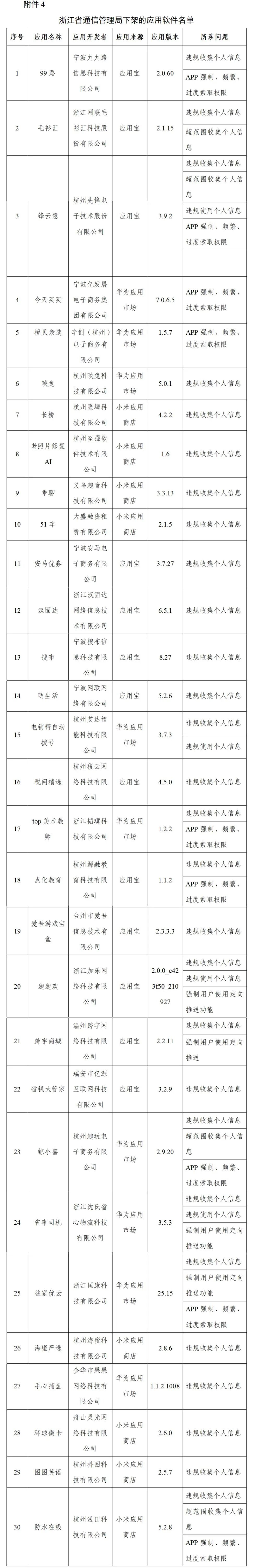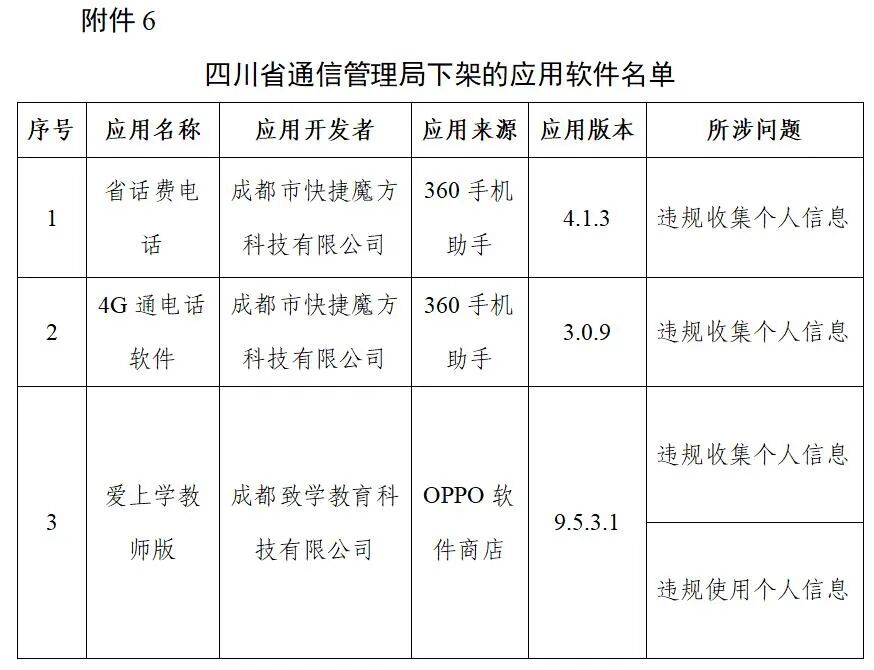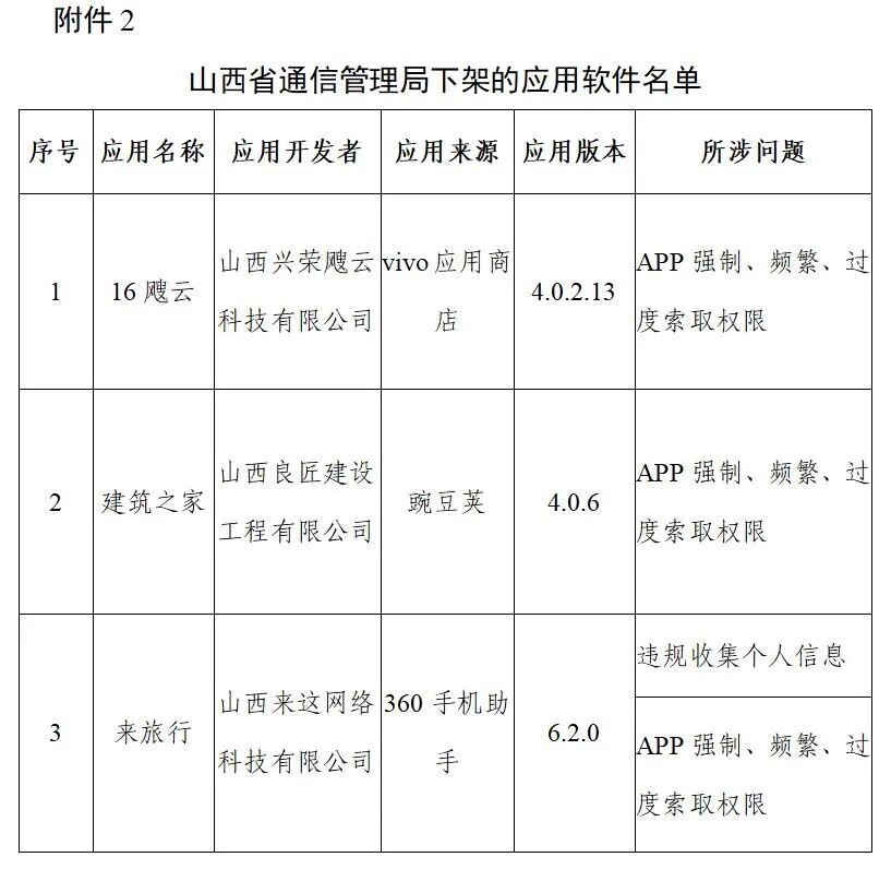 今年以来,我部持续推进APP侵害用户权益专项整治行动,加大常态化检查力度,先后三次组织对用户反映强烈的重点问题开展“回头看”。11月3日,我部针对APP超范围、高频次索取权限,非服务场景所必需收集用户个人信息,欺骗误导用户下载等违规行为进行了检查,并对未按要求完成整改的APP进行了公开通报。截至目前,尚有5款APP未按我部要求完成整改(详见附件1)。各通信管理局按照我部统筹部署,积极开展APP技术检测,截至目前尚有101款APP仍未完成整改(详见附件2-8)。