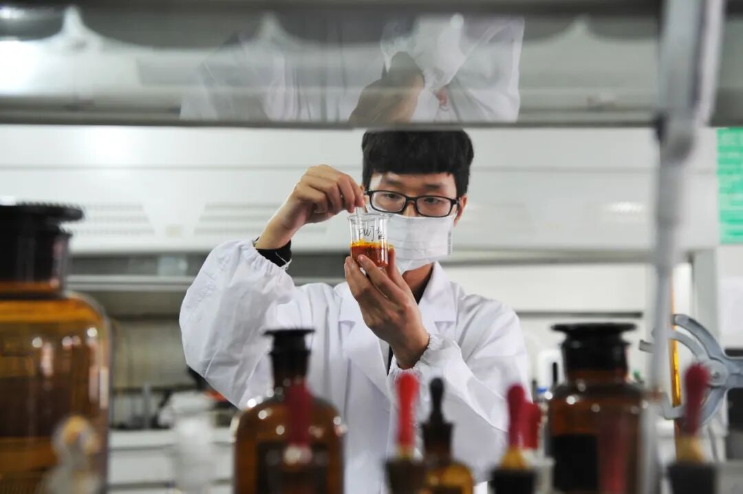 老干妈公司化验人员正在对老干妈风味辣椒香、辣、咸等指数进行调配。赵松 摄 (贵州图片库发)