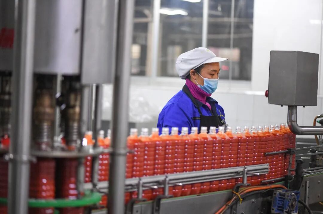 工人在安顺经济技术开发区一家金刺梨生产企业罐装金刺梨汁。陈熙 摄 (贵州图片库发)