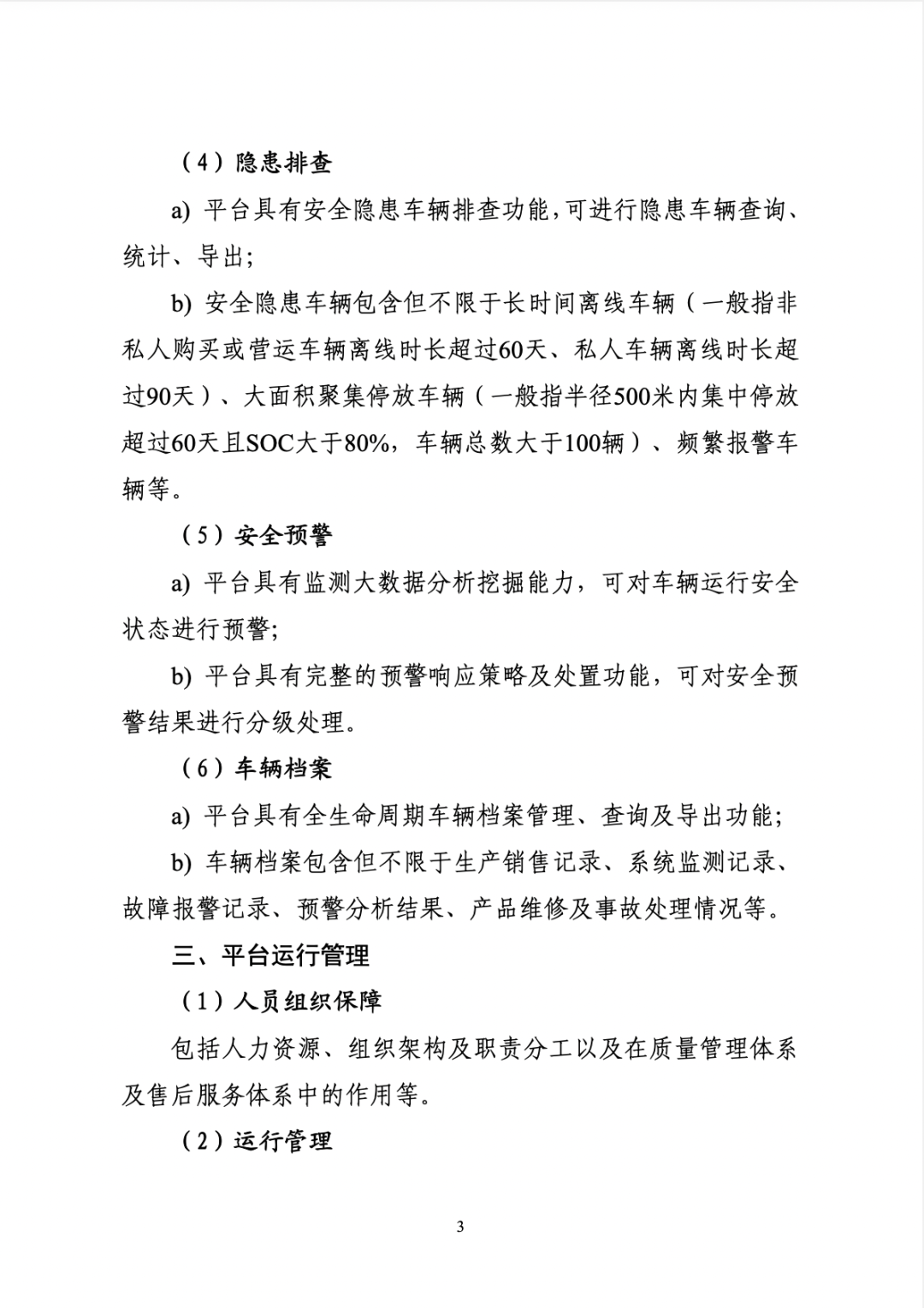 (九)建立隐患车辆排查机制。鼓励企业加强车辆运行安全状态隐患排查,及时跟踪和确认长时间离线车辆的安全状态,妥善处理大面积聚集停放、频繁报警等存在安全隐患的车辆。