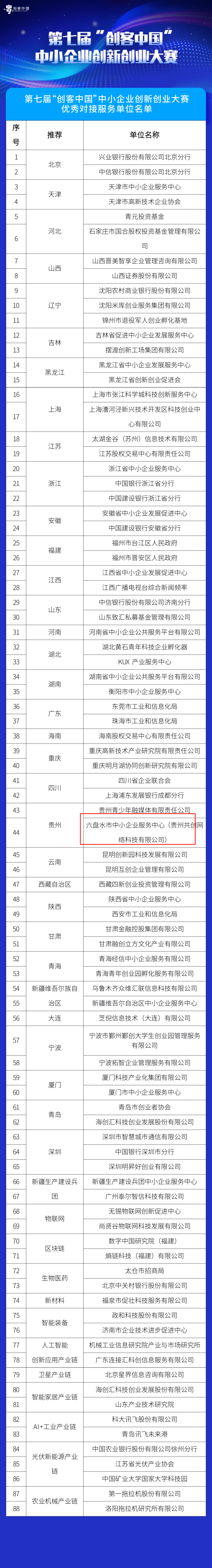 2022年12月26日,六盘水市中小企业服务中心(贵州共创网络科技有限公司)荣获第七届“创客中国”中小企业创新创业大赛优秀对接服务单位称号。